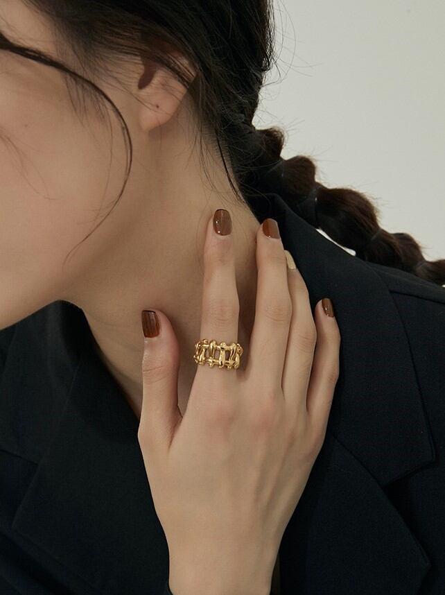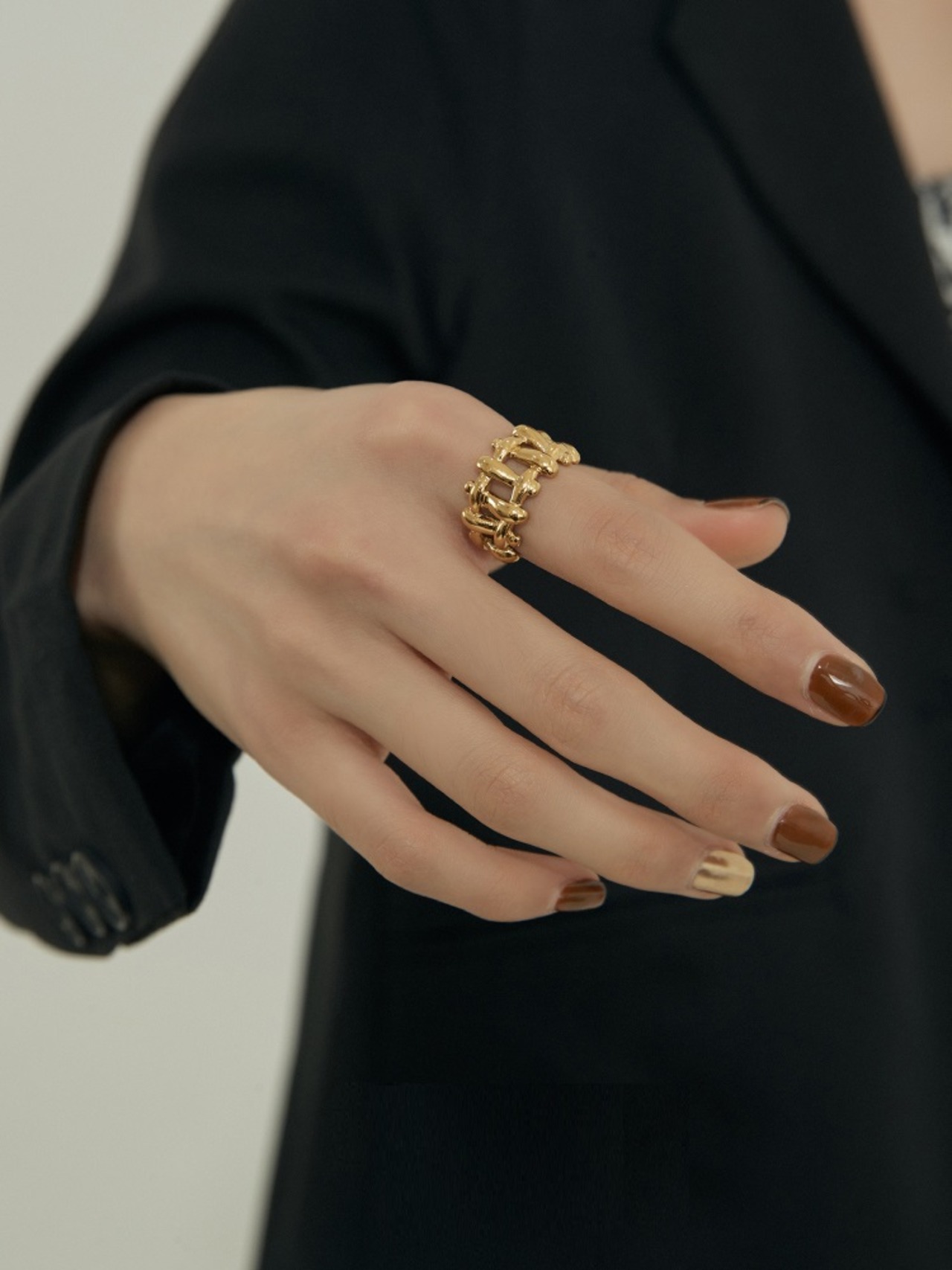オープンデザインが指を美しく見せ、華やかなゴールドが印象的なアクセントとなります♪