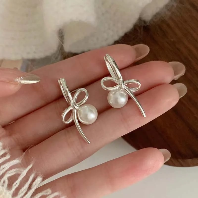 上品で可愛らしい印象を与えるパールリボンモチーフのピアスです♡