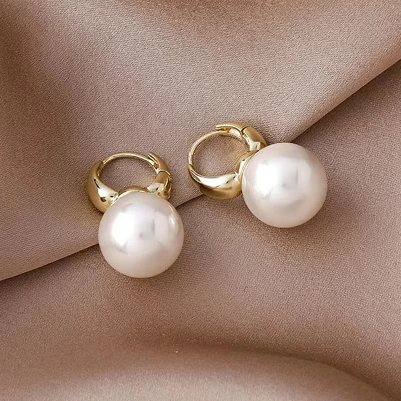 一粒のパールが優雅に輝く、洗練されたゴールド金具のフープピアスです♡