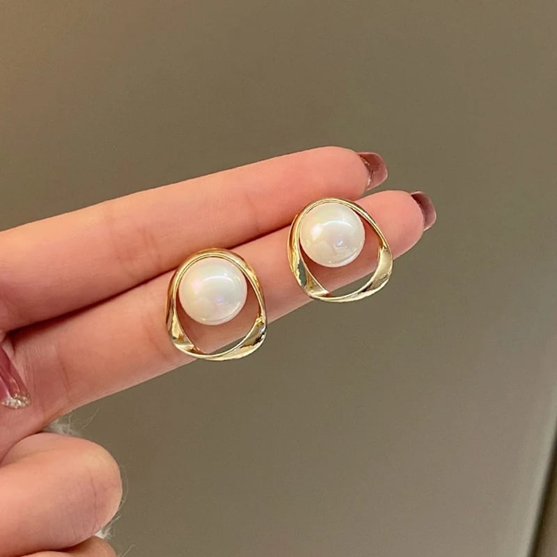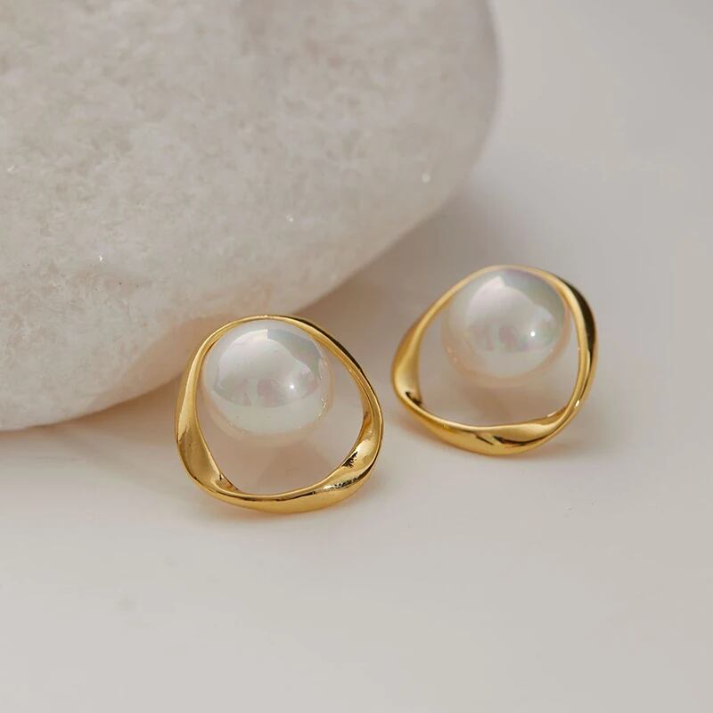 中心にあしらわれた直径1.3cmのパールが、耳元に上品な輝きを添え、デイリーコーデから特別な日まで幅広く活躍するアイテムです^^