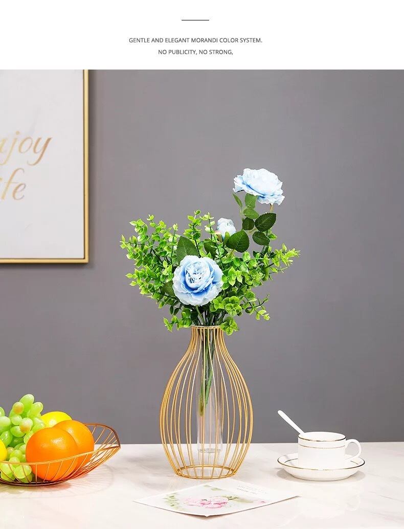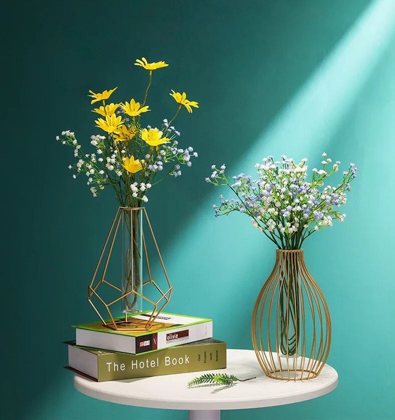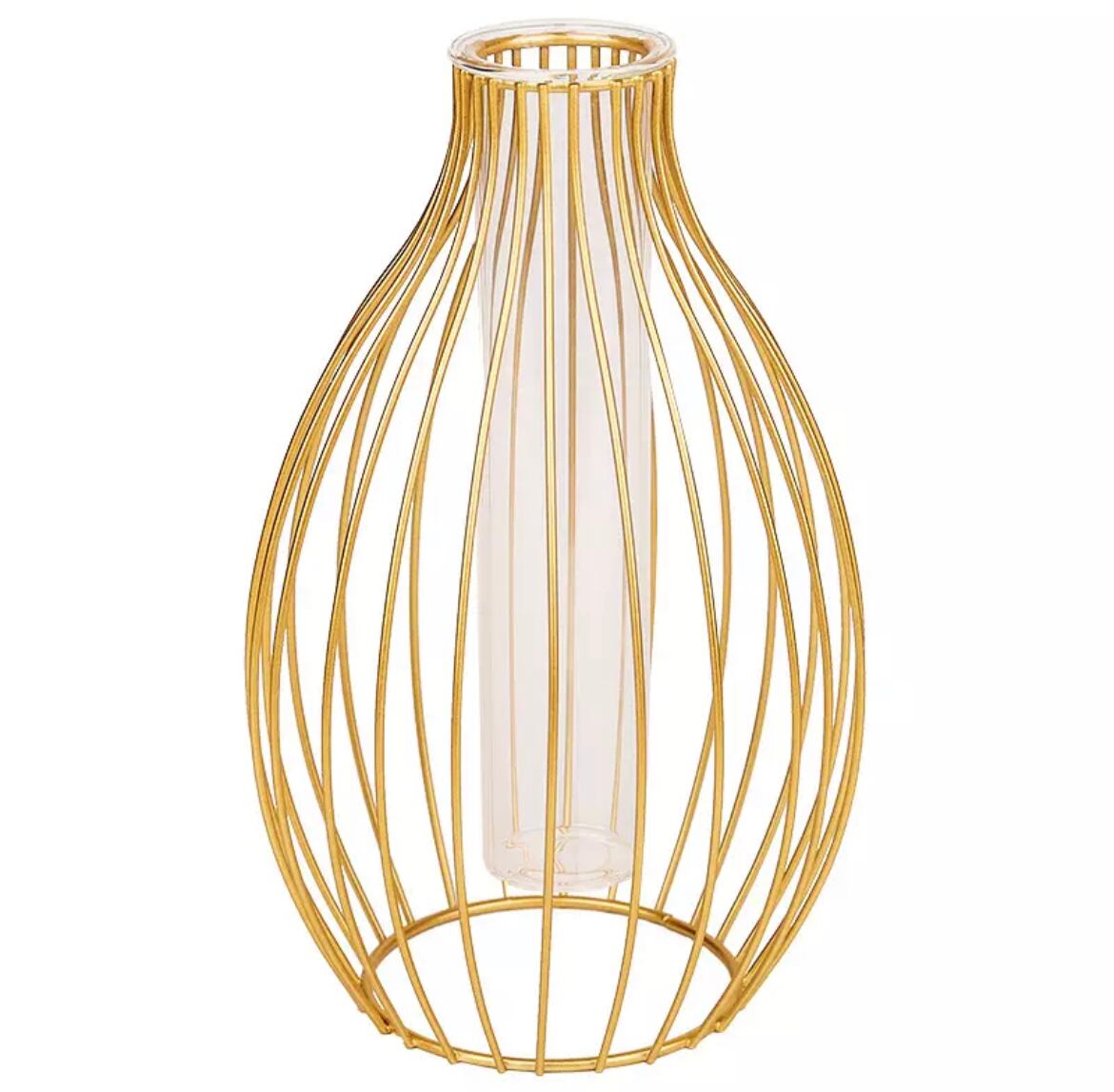 ガラス花瓶とゴールドの鉄の枠組みのセット商品です。