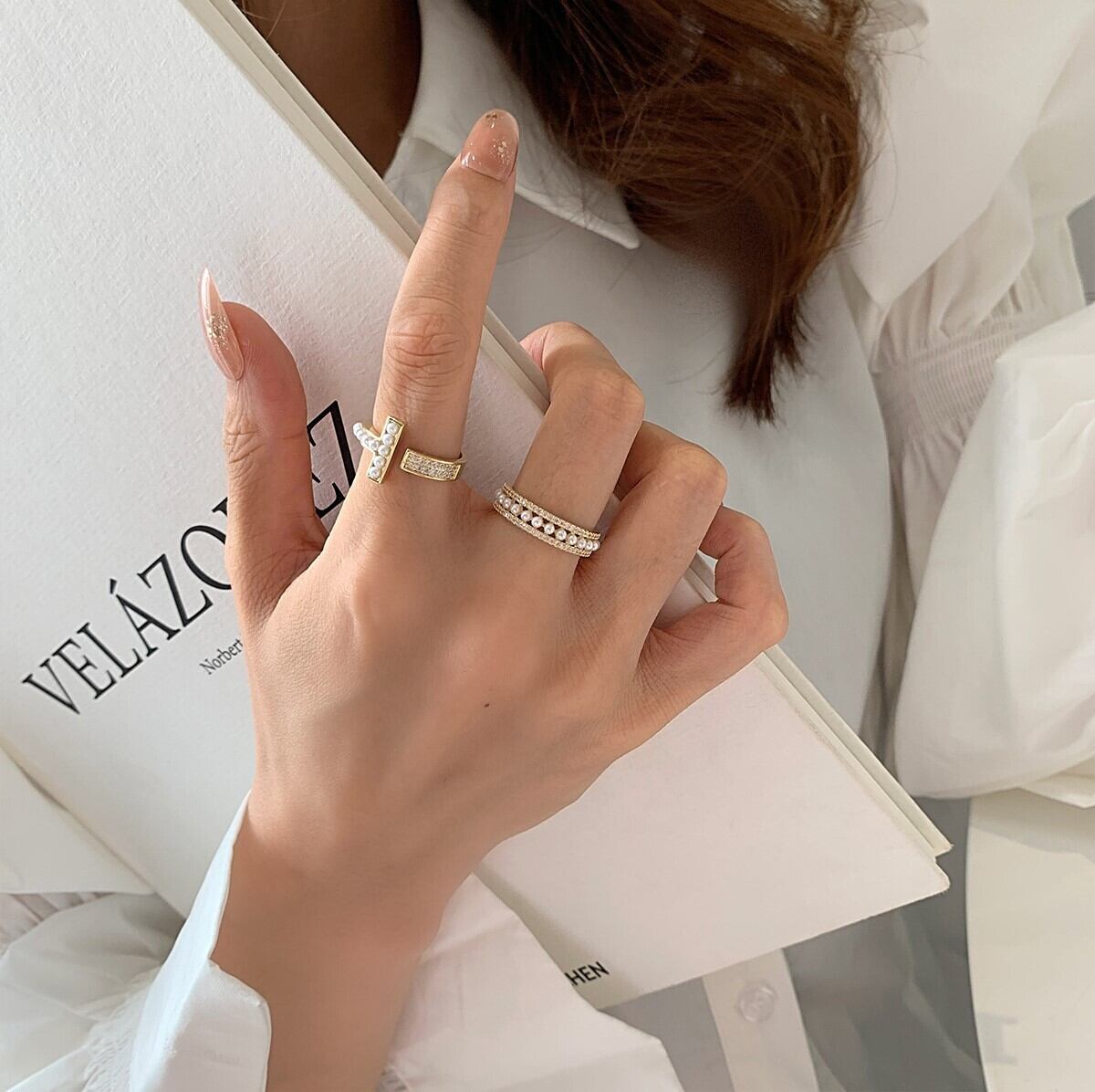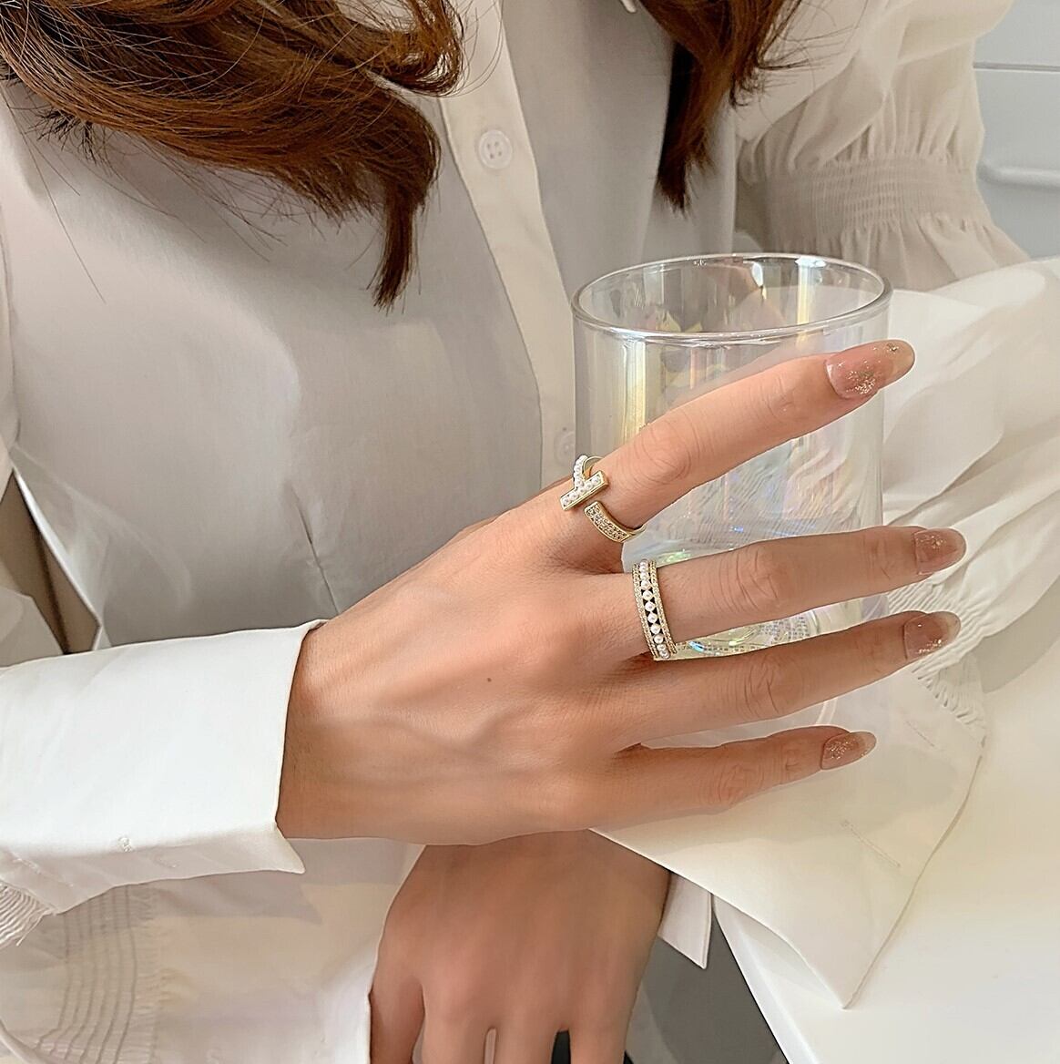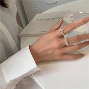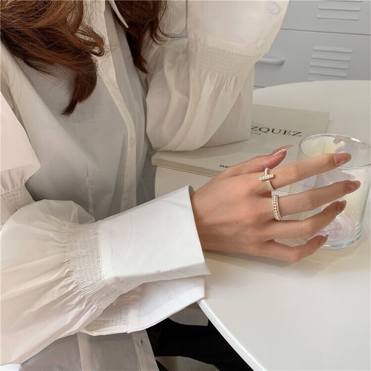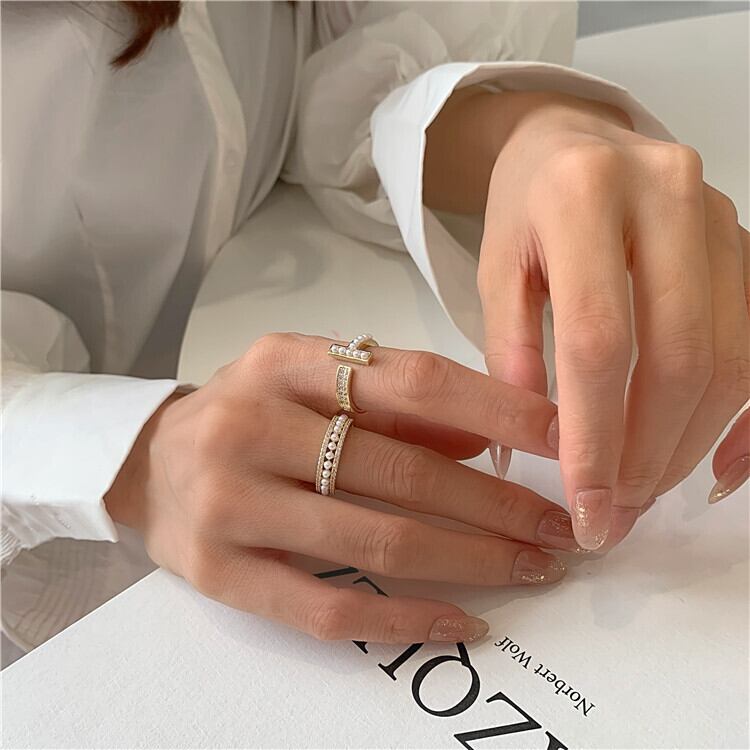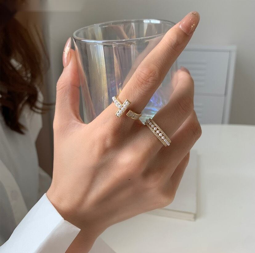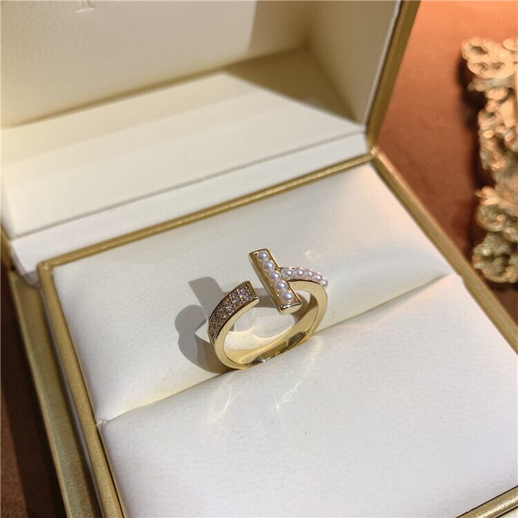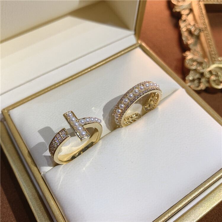 T字パールリング パール ジルコニア 冬アクセサリー リング プレゼント ゴールド
