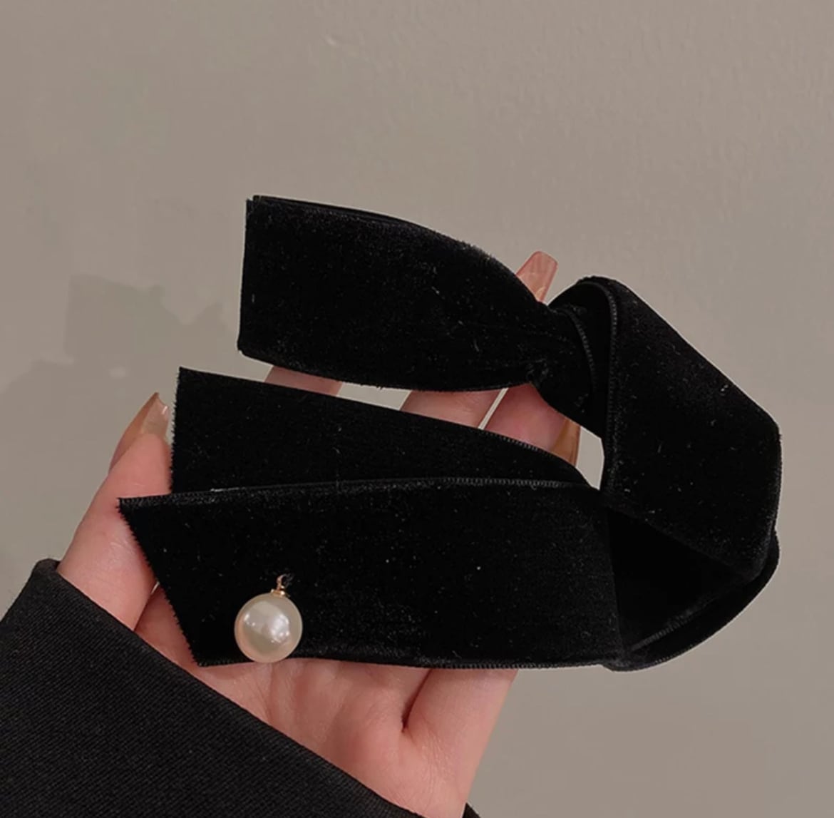エレガントで華やかな印象を与えるベロアリボンとパールを使用したヘアアクセサリーです!