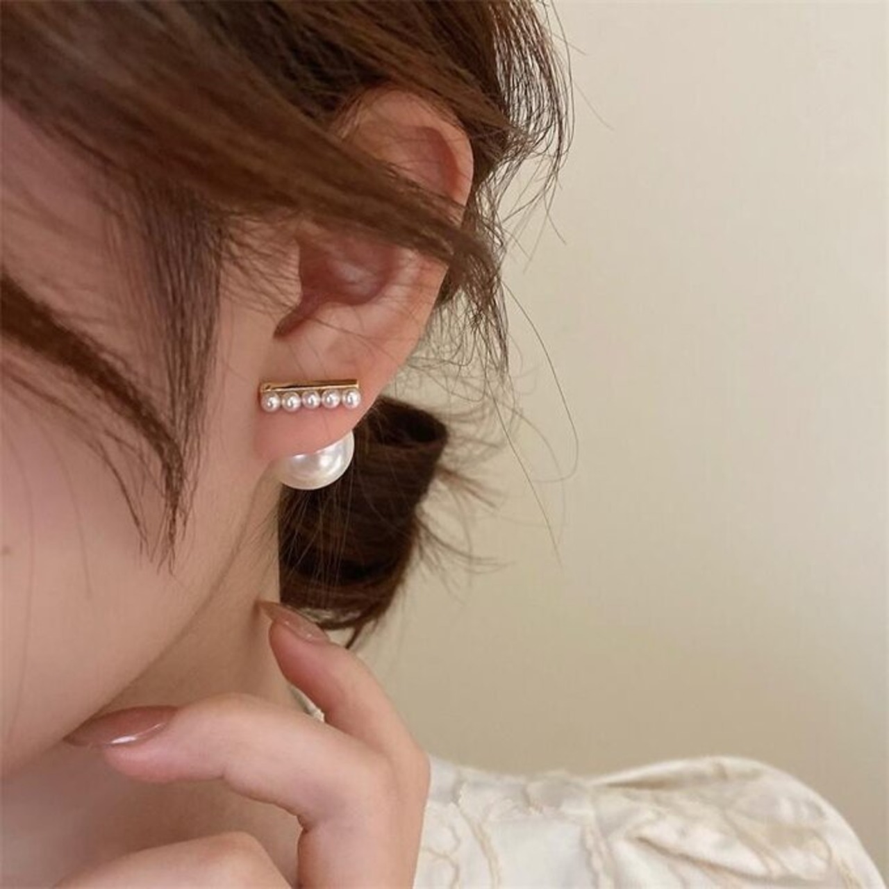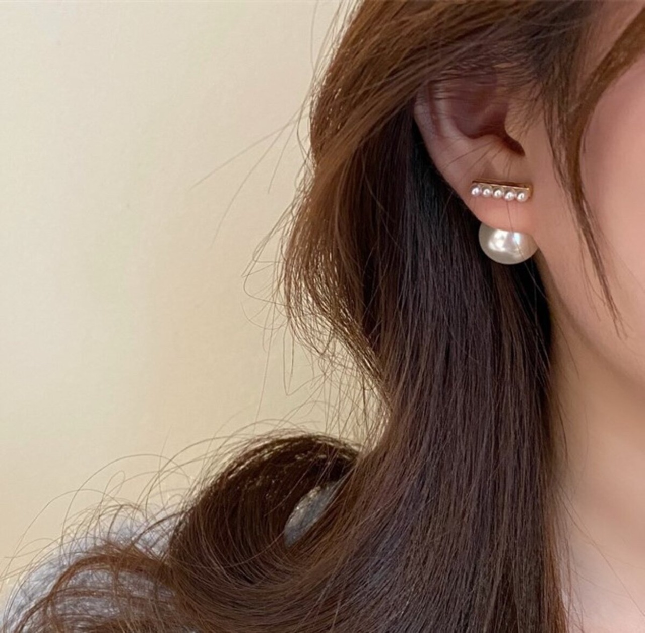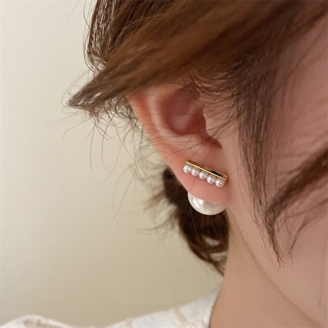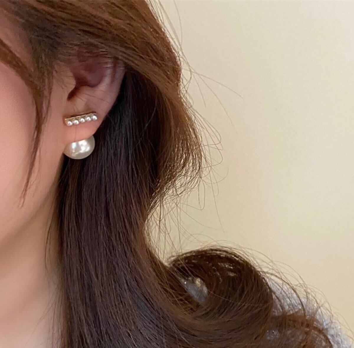 表側が小さいパールが並ぶスティックタイプとなっており、裏側のキャッチ部分は存在感のある大きなパールです♡