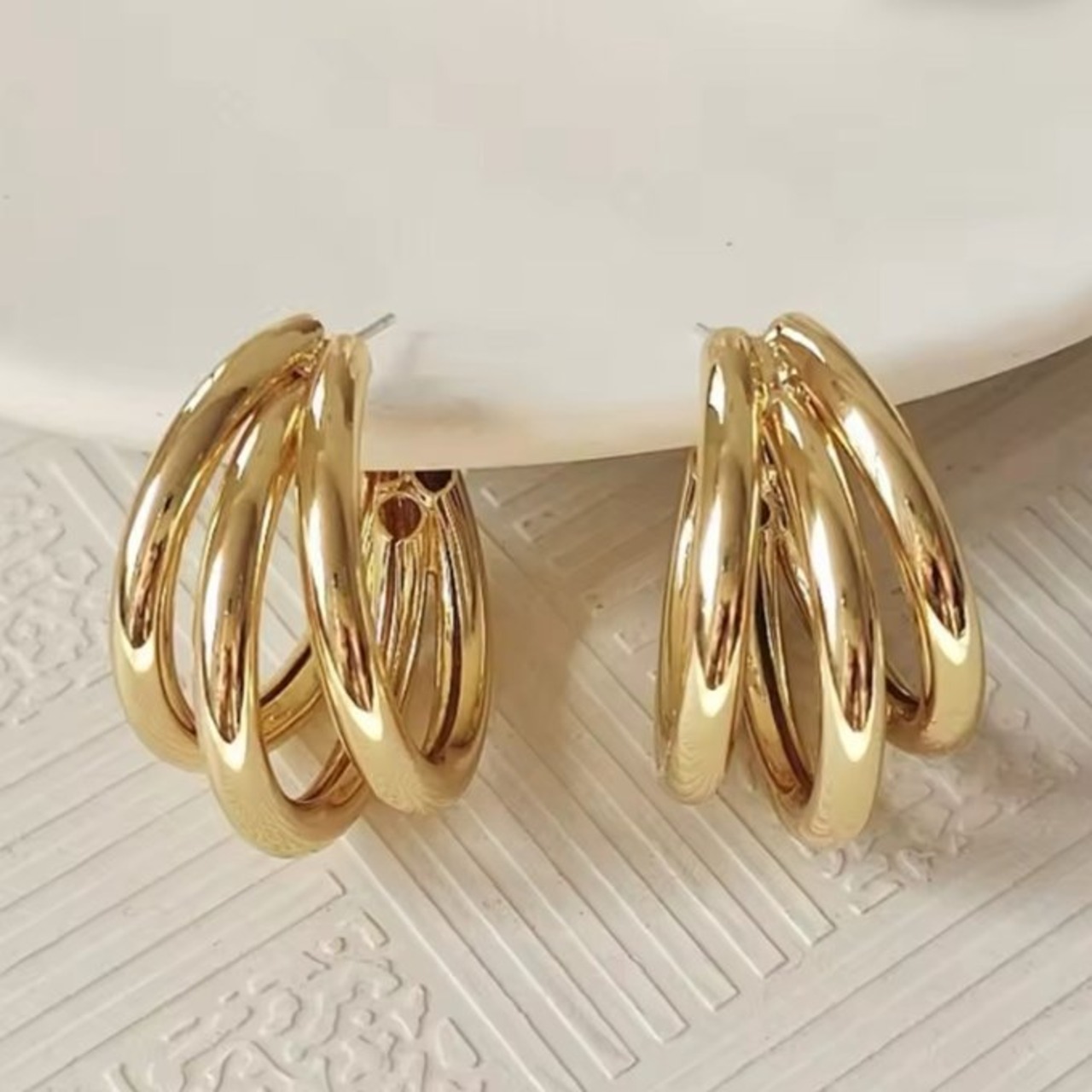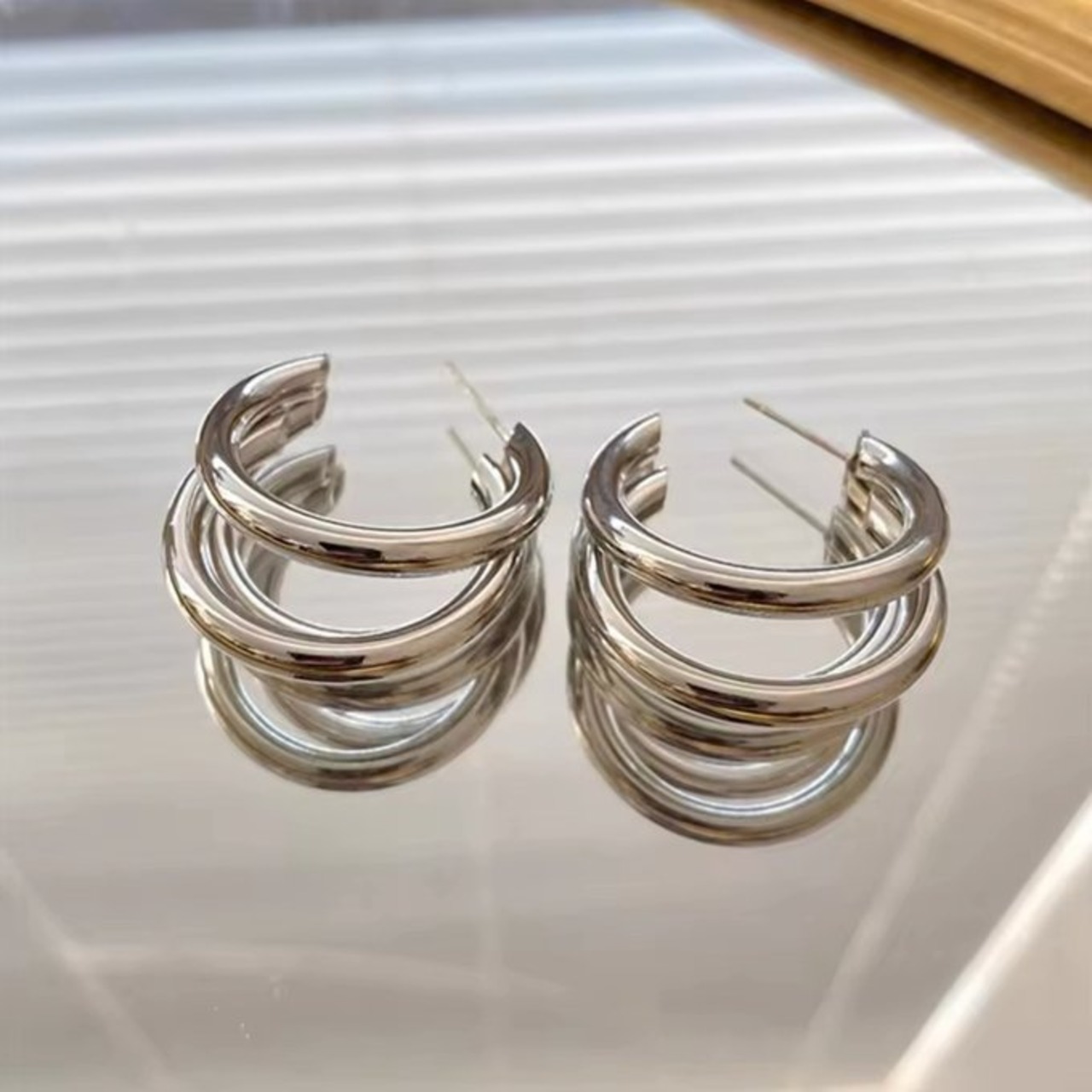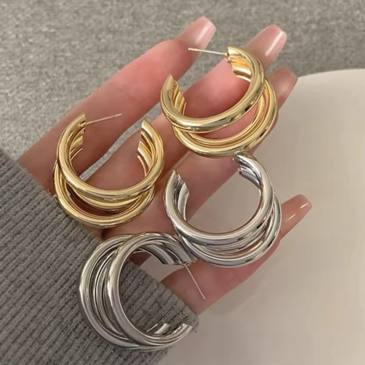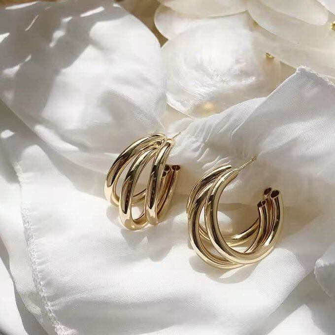 上品なゴールドとシルバーの3連フープピアスで、耳元に華やかさをプラスします!