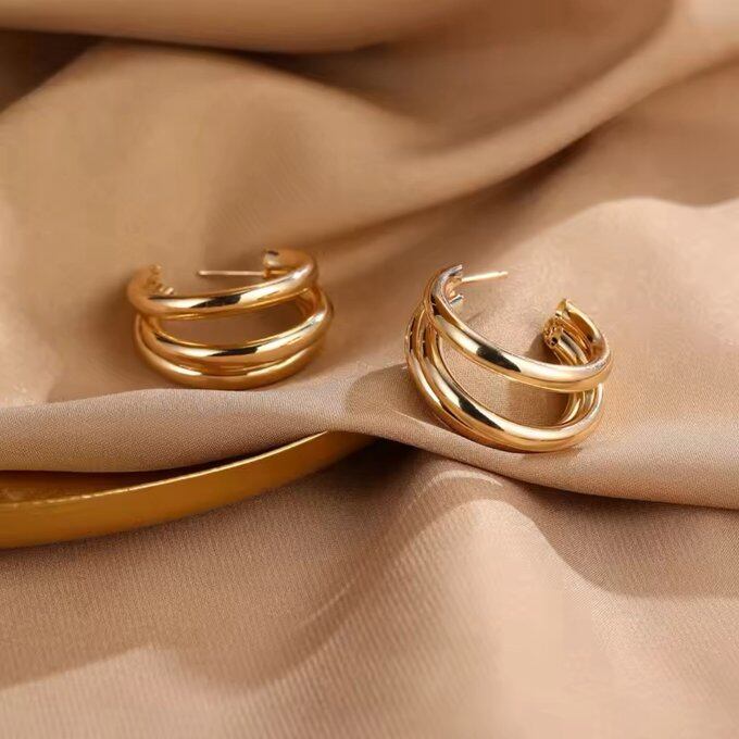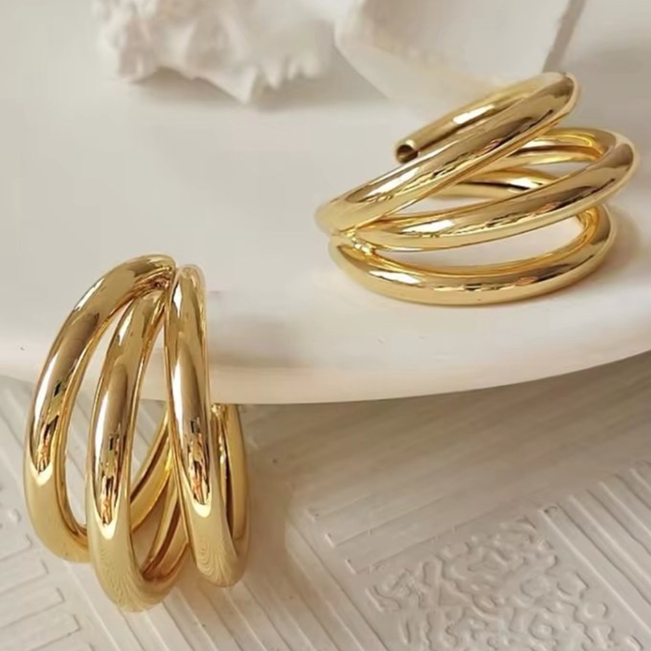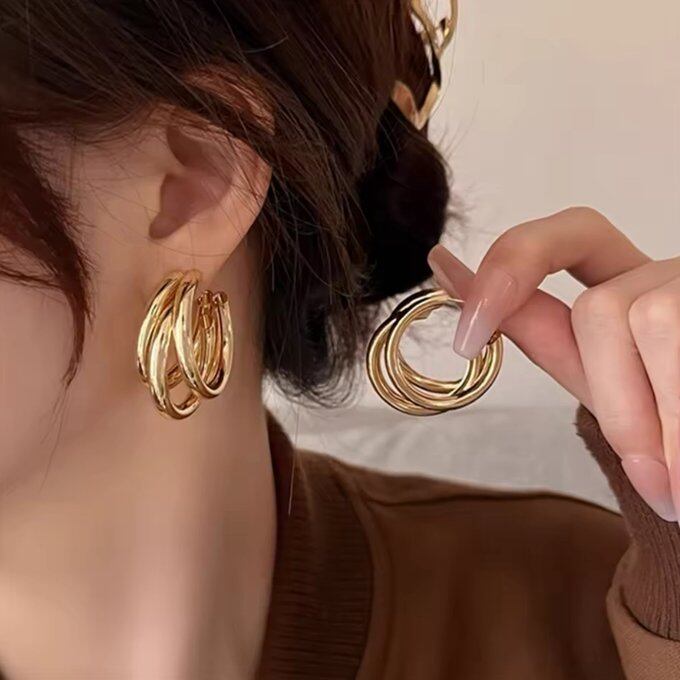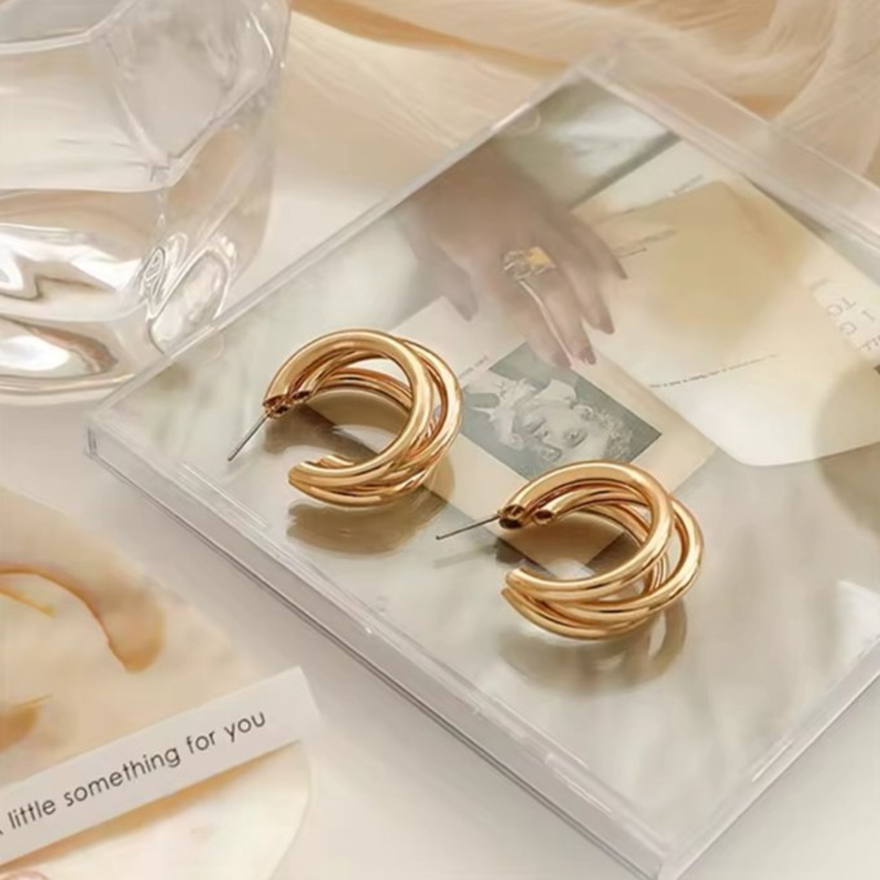 上品なゴールドとシルバーの3連フープピアスで、耳元に華やかさをプラスします!