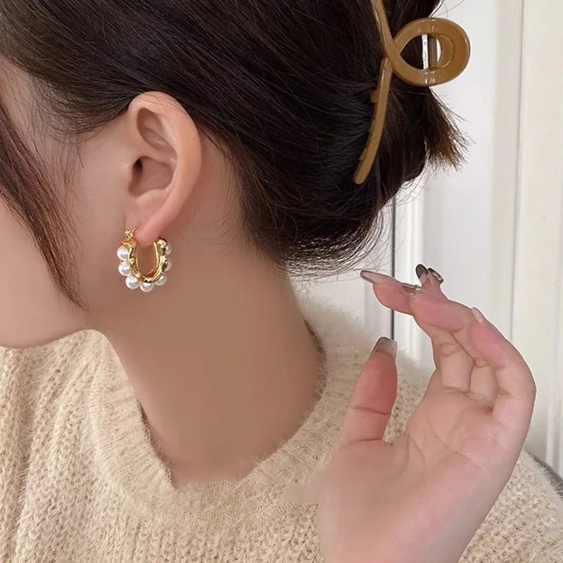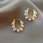 エレガントなゴールドカラーを特徴とし、優雅なU字型に美しいパールがあしらわれたフープピアスで耳元を華やかに彩ります!