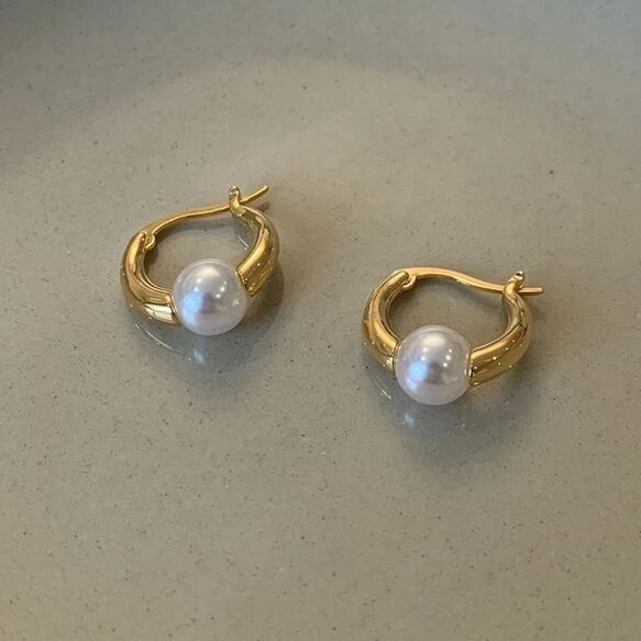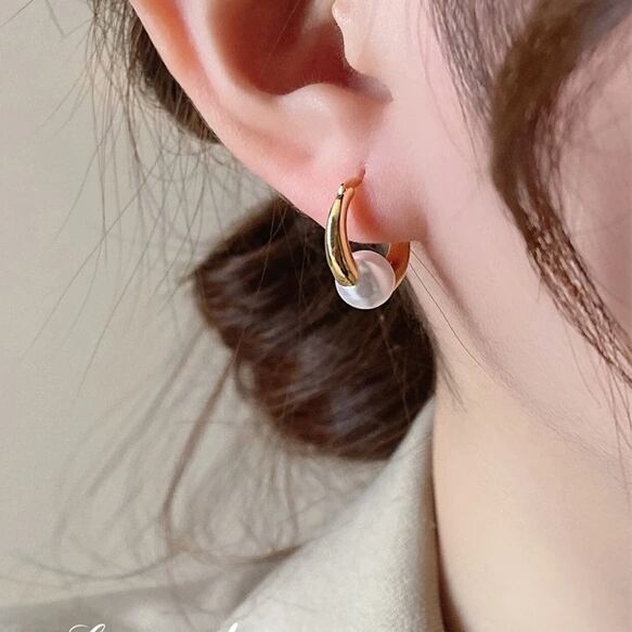 **Pearl×Gold mini*フープピアス♡**