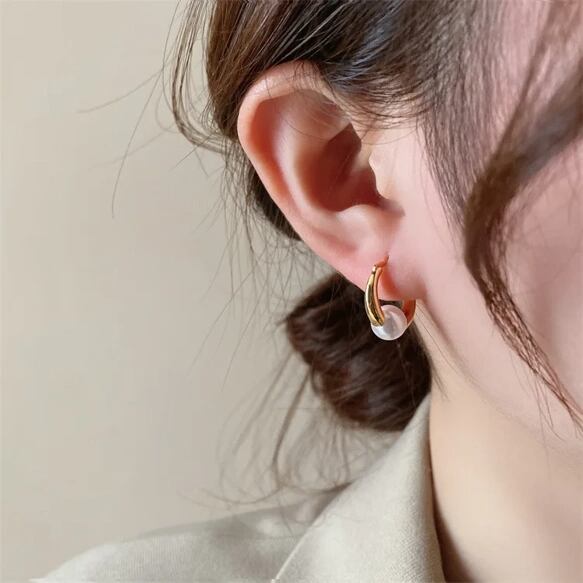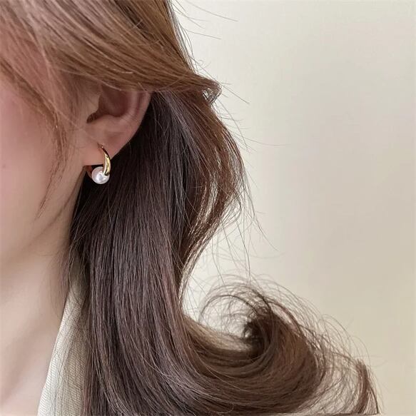 煌びやかなゴールドカラーに美しいパールがあしらわれたミニフープピアスで、耳元を華やかに彩ります!