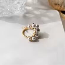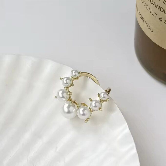 様々な大きさの美しいPearlが半円状にあしらわれたオープンリングです♡