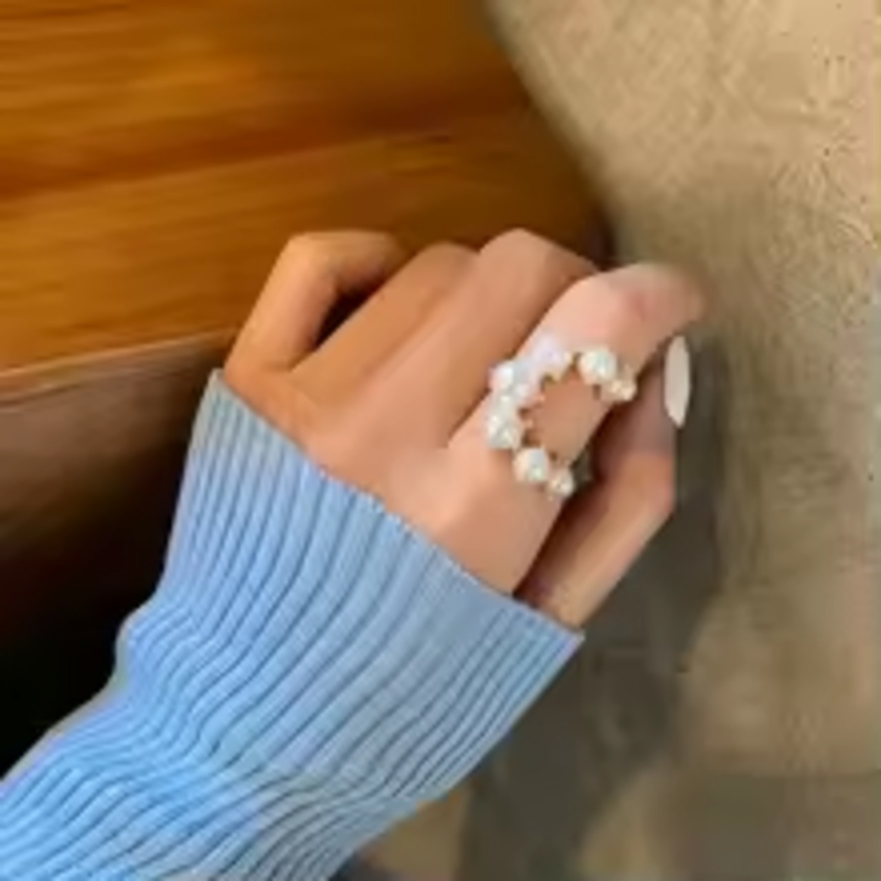 フリーサイズで調整可能なので、どの指にもお好きなようにお付けいただけます♪